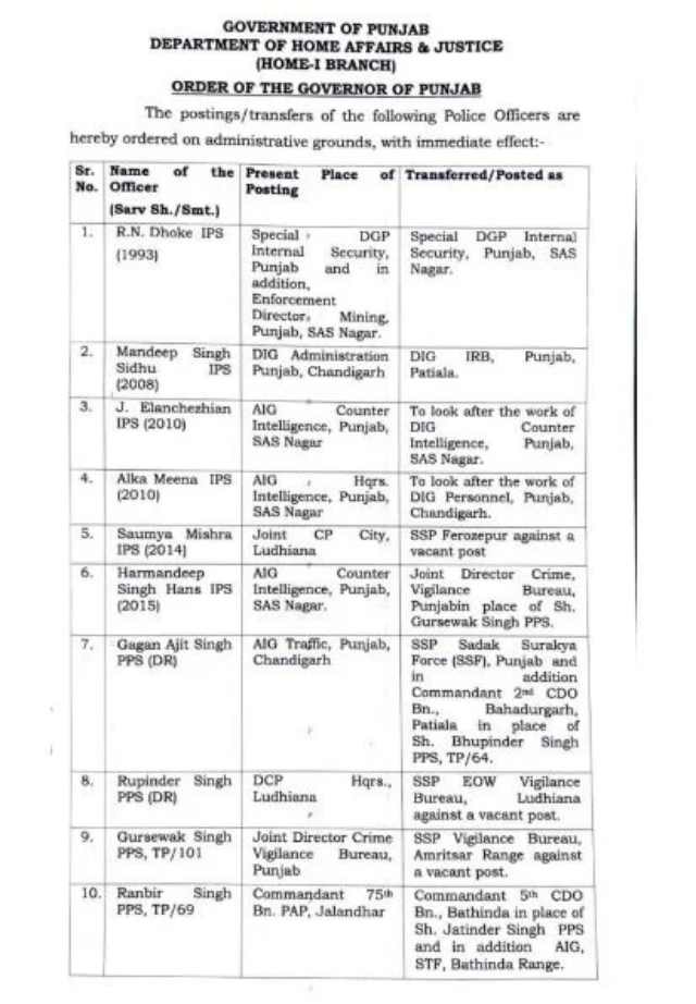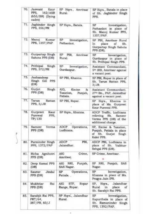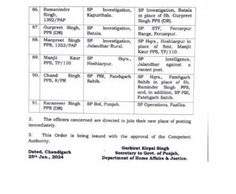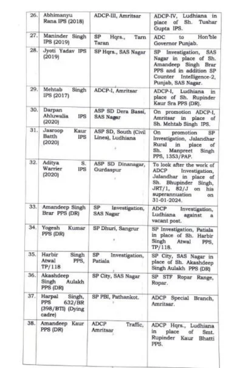 91 IPS / PPS ਅਧਿਕਾਰੀਆਂ ਦਾ ਹੋਇਆ ਫੇਰਬਦਲ.. ਪੜ੍ਹੋ ਲਿਸਟ Post published:January 25, 2024 ਚੰਡੀਗੜ੍ਹ 25 ਜਨਵਰੀ (PPT NEWS): ਪੰਜਾਬ ਸਰਕਾਰ ਵਲੋਂ 26 ਜਨਵਰੀ ਤੋਂ ਇੱਕ ਦਿਨ ਪਹਿਲਾਂ ਪੰਜਾਬ ਪਲਿਸ ਵਿਚ ਵੱਡਾ ਫੇਰਬਦਲ ਕੀਤਾ ਗਿਆ ਹੈ। ਜਿਸ ਵਿਚ 91 IPS / PPS ਅਧਿਕਾਰੀਆਂ ਦਾ ਤਬਾਦਲਾ ਕੀਤਾ ਗਿਆ ਹੈ ।ਪੜ੍ਹੋ ਲਿਸਟ.. Post Views: 356 Read more articles Previous Postਪੀ.ਆਰ.ਟੀ.ਸੀ ਜਹਾਨਖੇਲਾਂ ਦੇ ਡੀ.ਐਸ.ਪੀ ਗੁਰਜੀਤ ਪਾਲ ਸਿੰਘ ਦੀ ਮੈਡਲ ਫਾਰ ਮੈਰੀਟੋਰੀਅਸ ਸਰਵਿਸਜ਼ ਲਈ ਹੋਈ ਚੋਣ Next Postਬਲਜੀਤ ਸਹੋਤਾ ਵਲੋਂ ਸਕੂਲ ਨੂੰ 51 ਹਜ਼ਾਰ ਰੁਪਏ ਦਾਨ You Might Also Like गढ़दीवाला..साईं सेवक संघ द्वारा अजोजित साईं संध्या दौरान भक्तिरस में आनंदविभोर हुए श्रद्धालु June 24, 2023 ਪੰਜਾਬ ਦੇ ਅਧਿਆਪਕਾਂ ਨੂੰ ਪੜਾਈ ਤੋਂ ਬਿਨਾਂ ਹੋਰ ਕੋਈ ਕੰਮ ਨਹੀਂ ਦਿੱਤਾ ਜਾਵੇਗਾ : ਮੁੱਖ ਮੰਤਰੀ ਭਗਵੰਤ ਮਾਨ June 25, 2022 ਗੜ੍ਹਦੀਵਾਲਾ ਭਾਜਪਾ ਮੰਡਲ ਦੇ ਅਹੁਦੇਦਾਰਾਂ ਅਤੇ ਕਾਰਜਕਾਰਨੀ ਮੈਂਬਰਾਂ ਦੀ ਸੂਚੀ ਜਾਰੀ March 17, 2023 ਮੁੱਖ ਮੰਤਰੀ ਭਗਵੰਤ ਮਾਨ ਸਮੇਤ 6 ਮੰਤਰੀਆਂ ਦੇ ਬਦਲੇ ਵਿਭਾਗ January 7, 2023 ਏਸ਼ਿਆਈ ਖੇਡਾਂ ‘ਚ ਚਾਂਦੀ ਦੇ ਤਗ਼ਮੇ ਜਿੱਤਣ ਵਾਲੀ ਹਰਮਿਲਨ ਬੈਂਸ ਨੂੰ ਕੈਬਨਿਟ ਮੰਤਰੀ,ਡਿਪਟੀ ਕਮਿਸ਼ਨਰ, ਐਸ.ਐਸ.ਪੀ ਤੋਂ ਇਲਾਵਾ ਖੇਡ ਪ੍ਰੇਮੀਆਂ ਨੇ ਕੀਤਾ ਸਨਮਾਨਿਤ October 13, 2023