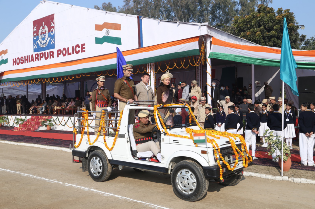 : ਡਿਪਟੀ ਕਮਿਸ਼ਨਰ ਕੋਮਲ ਮਿੱਤਲ ਨੇ 75ਵੇਂ ਗਣਤੰਤਰ ਦਿਵਸ ਮੌਕੇ ਸਥਾਨਕ ਪੁਲਿਸ ਲਾਈਨ ਗਰਾਊਂਡ ਹੁਸ਼ਿਆਰਪੁਰ ਵਿਖੇ ਕਰਵਾਏ ਜ਼ਿਲ੍ਹਾ ਪੱਧਰੀ ਸਮਾਗਮ ਵਿਚ ਰਾਸ਼ਟਰੀ ਝੰਡਾ ਲਹਿਰਾਇਆ। ਡਿਪਟੀ ਕਮਿਸ਼ਨਰ ਨੇ ਐਸ.ਐਸ.ਪੀ ਸੁਰੇਂਦਰ ਲਾਂਬਾ, ਵਧੀਕ ਡਿਪਟੀ ਕਮਿਸ਼ਨਰ (ਜ) ਰਾਹੁਲ ਚਾਬਾ ਅਤੇ ਪਰੇਡ ਕਮਾਂਡਰ ਇੰਸਪੈਕਟਰ ਜਸਵੀਰ ਕੌਰ ਸਮੇਤ ਪਰੇਡ ਦਾ ਨਿਰੀਖਣ ਕਰਨ ਉਪਰੰਤ ਸ਼ਾਨਦਾਰ ਮਾਰਚ ਪਾਸਟ ਤੋਂ ਸਲਾਮੀ ਲਈ। ਇਸ ਮੌਕੇ ਸਕੂਲੀ ਬੱਚਿਆਂ ਵੱਲੋਂ ਸ਼ਾਨਦਾਰ ਮਾਸ ਪੀ.ਟੀ ਸ਼ੋਅ, ਸੱਭਿਆਚਾਰਕ ਪ੍ਰੋਗਰਾਮ ਦੀ ਪੇਸ਼ਕਾਰੀ ਕੀਤੀ ਗਈ ਅਤੇ ਗਿੱਧੇ ਤੇ ਭੰਗੜੇ ਦੀਆਂ ਧਮਾਲਾਂ ਪਈਆਂ।